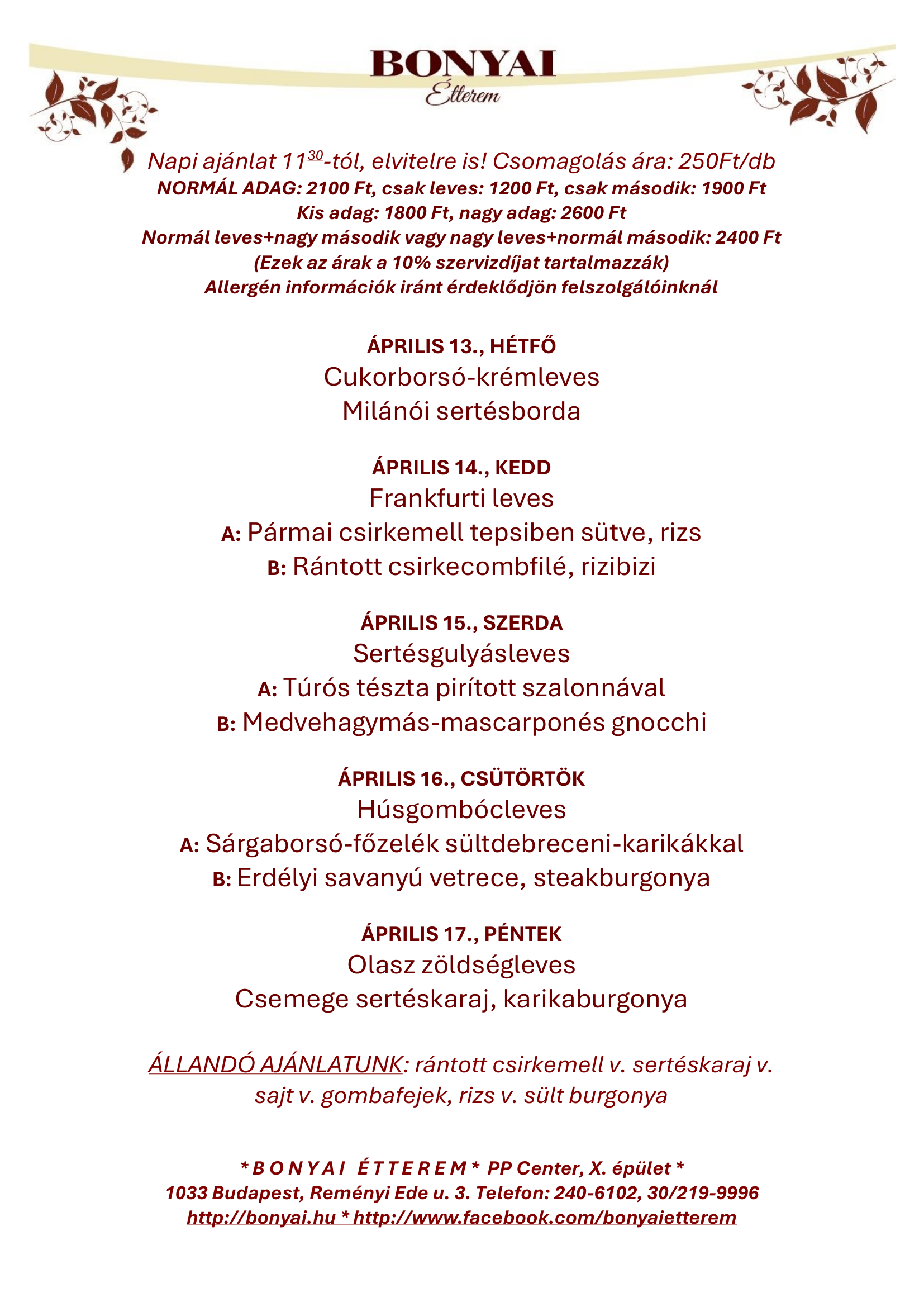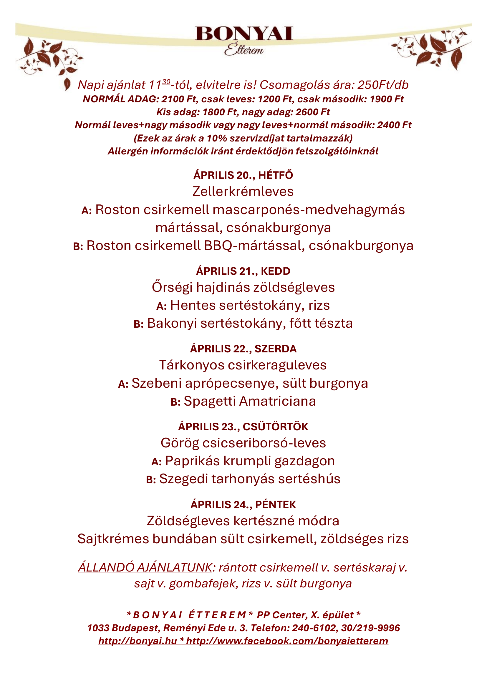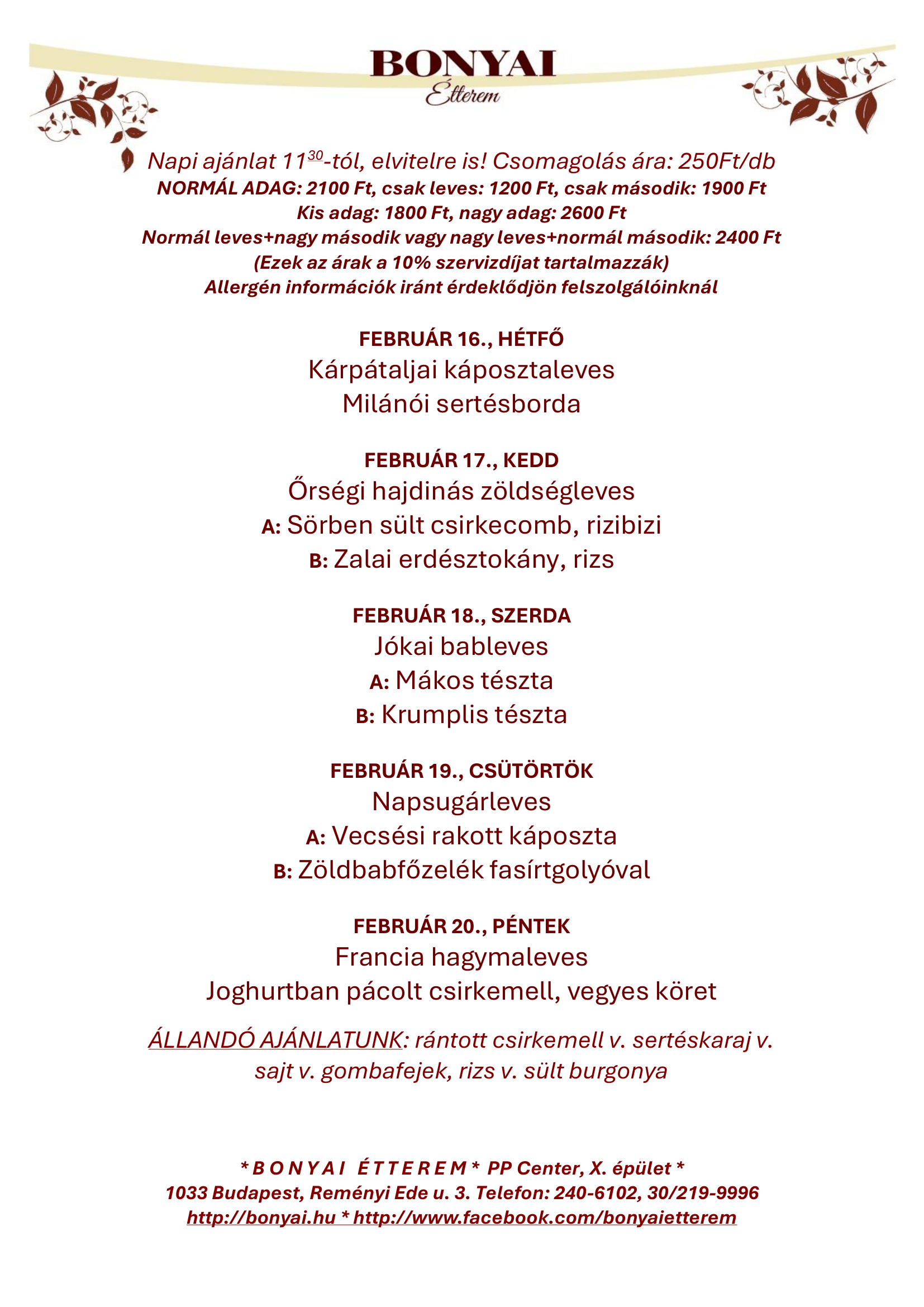 Örömmel köszöntjük Önt a Bonyai étterem honlapján!